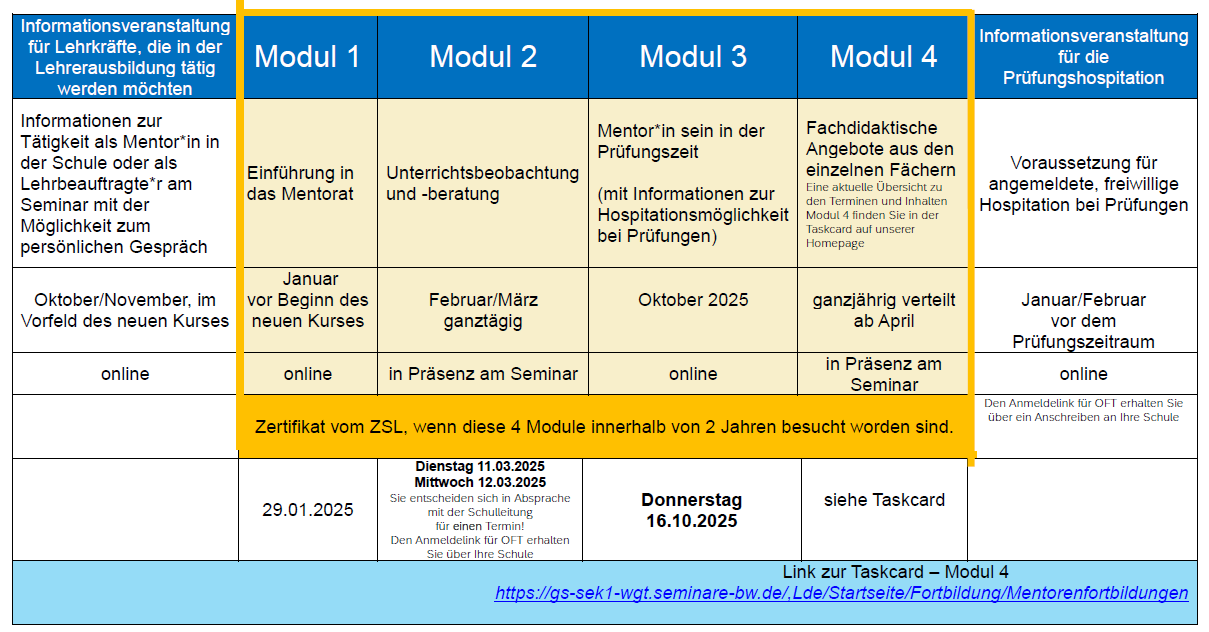 Das Fortbildungsangebot des Seminars Weingarten für Mentorinnen und Mentoren Hier geht's zur Taskcard mit Veranstaltungsübersicht